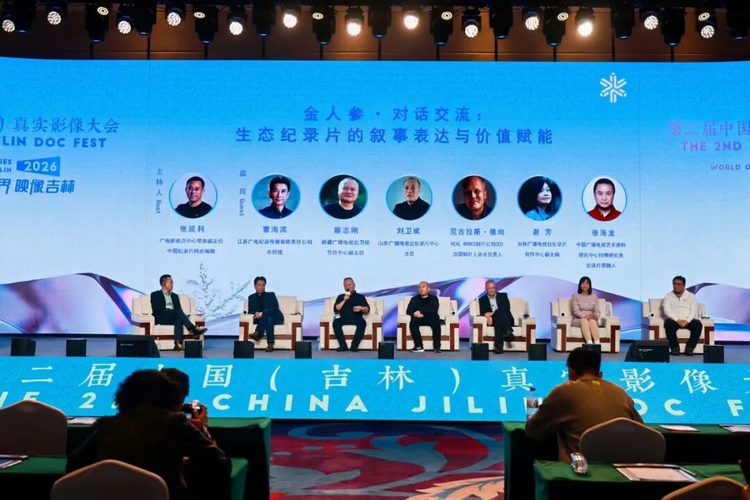 1月7日,第二届中国(吉林)真实影像大会的重要单元——金人参·对话交流在吉林省吉林市成功举行。本次圆桌对话以“生态纪录片的叙事表达与价值赋能”为核心主题,由广电新视点中心常务副主任、中国纪录片网总编辑张延利主持,邀请江苏广电纪录传媒有限责任公司总经理曹海滨,新疆广播电视台卫视节目中心副主任蔡志刚,山东广播电视台纪录片中心主任刘卫斌,REAL WORKS制片公司CEO、法国制片人协会负责人尼古拉斯·德尚,吉林广播电视台纪录片创作中心副主编谢芳,中国广播电视艺术资料研究中心特聘研究员、纪录片撰稿人张海龙等多位深耕纪录片创作的资深业界专家齐聚一堂,围绕生态题材纪录片的创作理念、叙事创新、国际传播等关键议题展开深度对话,共探生态纪录片连接人与自然、沟通中外文明的实践路径。