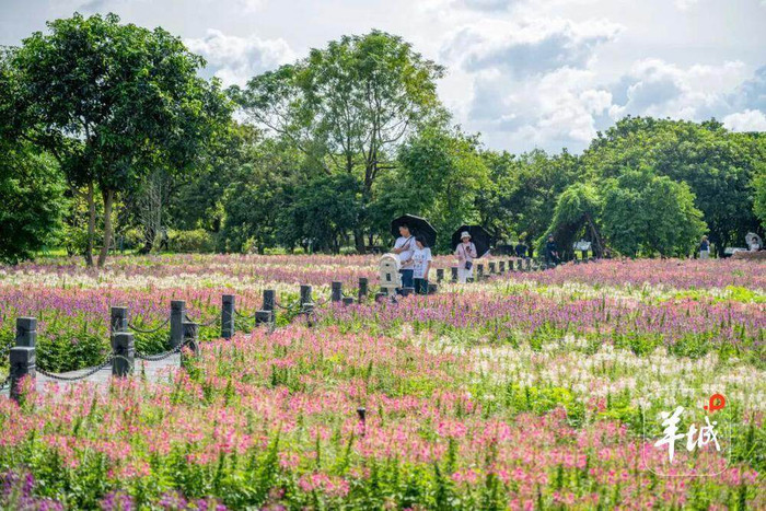 广州的花海,不局限在道路上。位于新滘中路南侧的海珠国家湿地公园,在夏末初秋时节,正以2万平方米的“千层糕花海”,迎接着海内外到访的朋友。除了赏花,公众还能在这里呼吸新鲜空气,看鱼鸟栖息。据悉,海珠国家湿地公园近期还完成了水系疏通、垛基果林复绿、栈道栏杆翻新等工程,既为候鸟迁徙提供新栖息地,也为市民增添“森呼吸”打卡点。