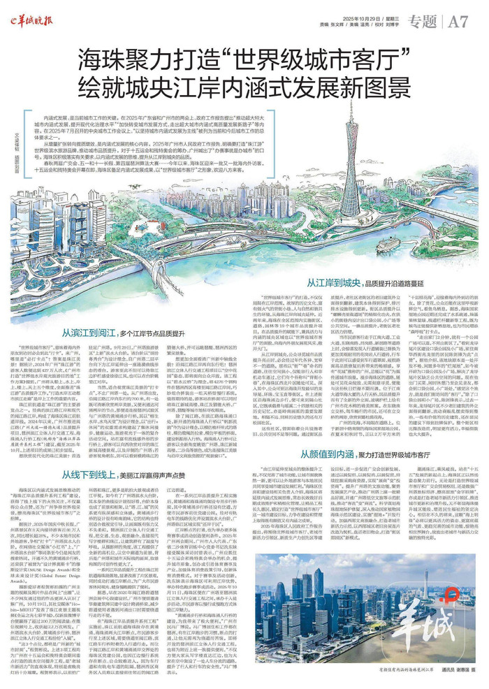 从增量扩张转向提质增效,是内涵式发展的核心内容。2025年广州市人民政府工作报告,明确要打造“珠江游”世界级滨水旅游品牌,推动城市品质提升。对于十五运会和残特奥会的筹办,广州喊出了“办赛事就是办城市”的口号。海珠区积极落实有关要求,以内涵式发展的思维,提升从江岸到城央的品质。